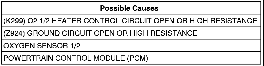 - Repair the (K299) O2 1/2 Heater Control circuit for an open circuit or high resistance.