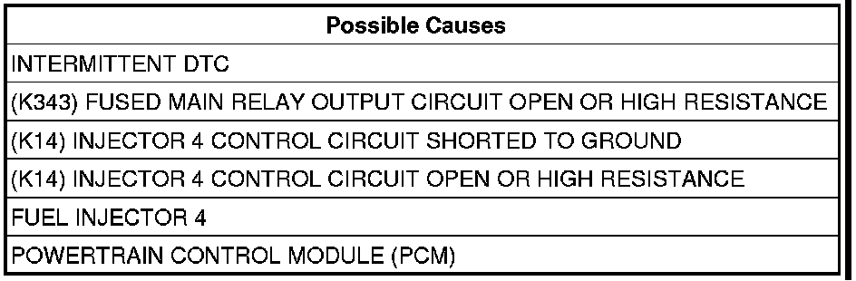 - Repair the (K14) Injector 4 Control circuit for an open circuit or high resistance.