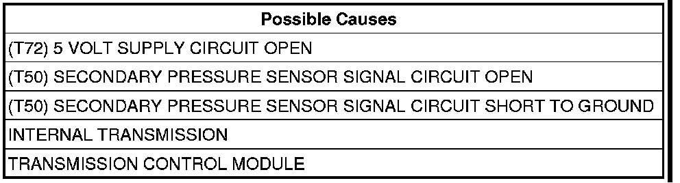 - Repair the (T50) Secondary Pressure Sensor Signal circuit for an open or high resistance.