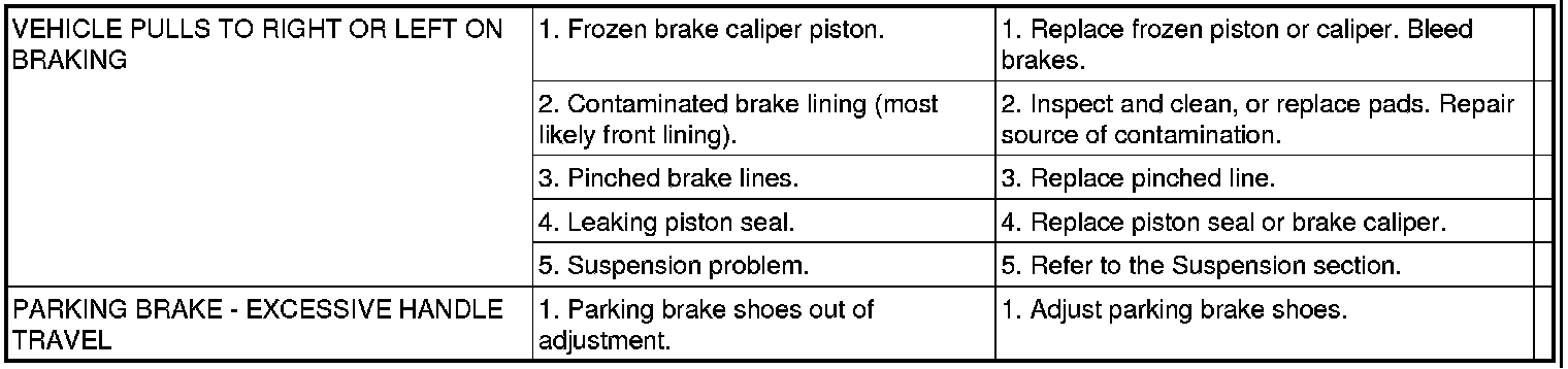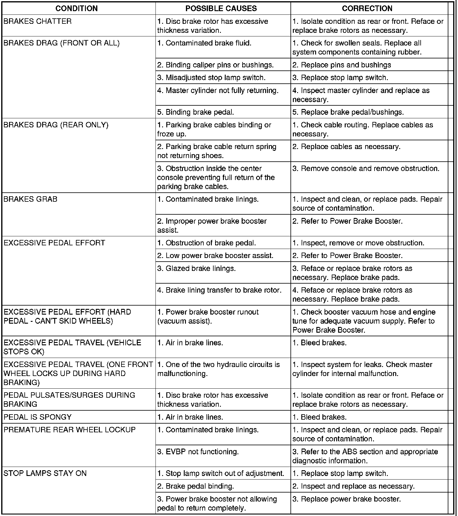 BASE BRAKE SYSTEM DIAGNOSIS CHARTS