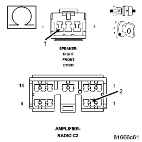 With a voltmeter set to read in A/C voltage, measure the voltage of the Amplified Right Front Door Speaker circuits in the Amplified Right Front Door Speaker harness connector.