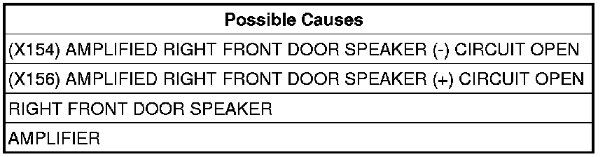 - Repair the (X156) Amplified Right Front Door Speaker (+) circuit for an open.