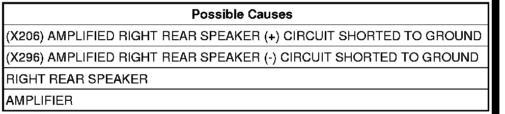 - Repair the (X206) Amplified Right Rear Speaker (+) circuit for a short to ground.