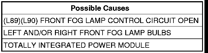 - Repair the (L89)(L90) Front Fog Lamp Control circuit for an open condition.