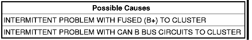 - Remove the Cluster and inspect the Fused B (+) and both CAN B BUS circuits for spread terminals or intermittent opens.