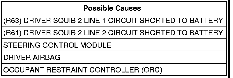 - Repair the Driver Squib 2 circuits with voltage present for a short to battery.
