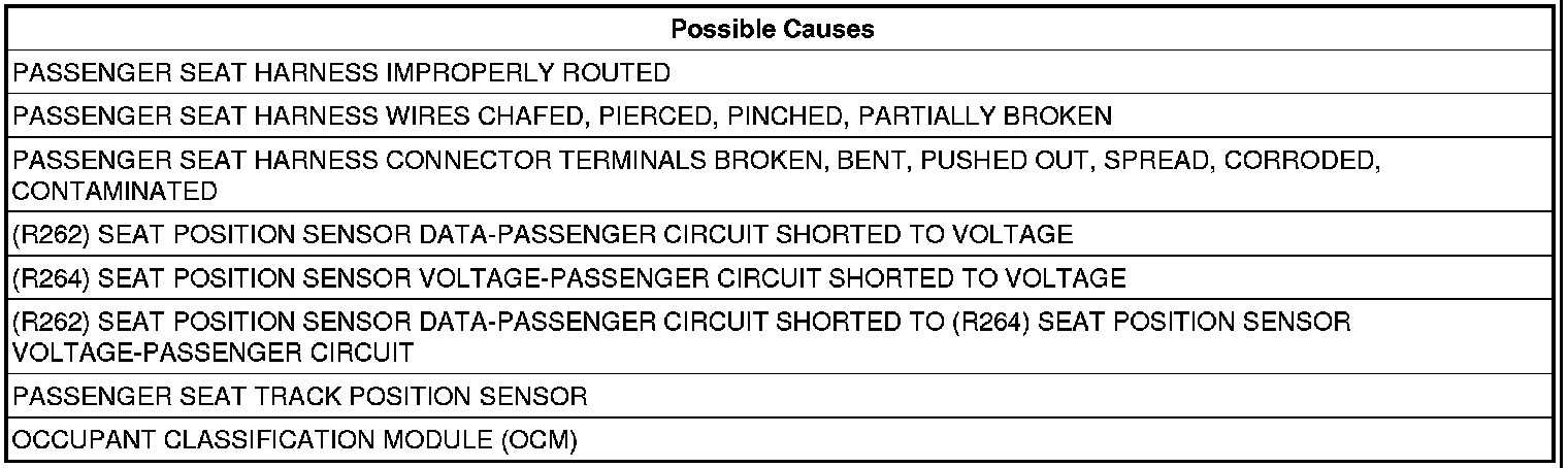 7. CHECK (R262) SEAT POSITION SENSOR DATA-PASSENGER CIRCUIT FOR A SHORT TO (R264) SEAT POSITION SENSOR VOLTAGE-PASSENGER CIRCUIT