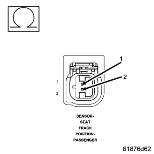 Measure the resistance between the (R262) Seat Position Sensor Data-Passenger circuit and the (R264) Seat Position Sensor Voltage-Passenger circuit.