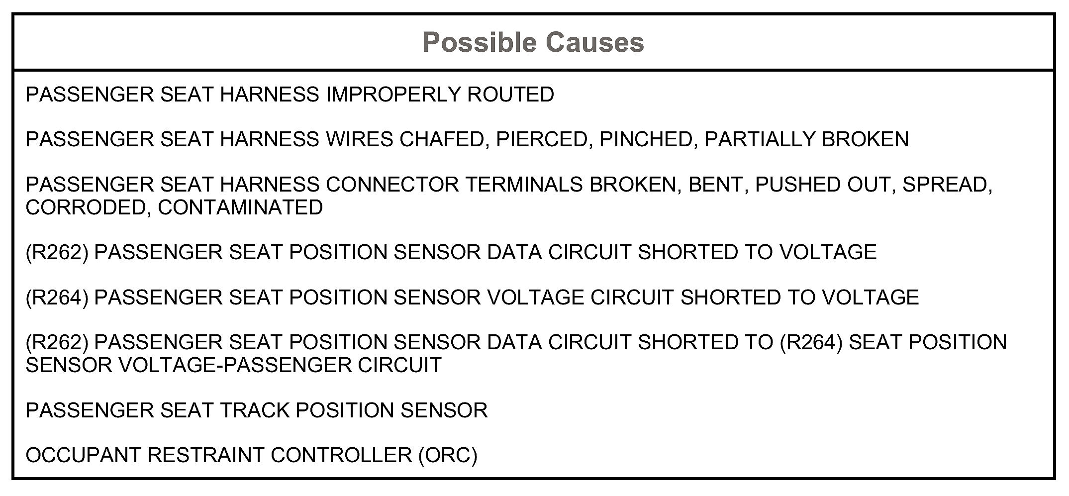 7. CHECK (R262) SEAT POSITION SENSOR DATA-PASSENGER CIRCUIT FOR A SHORT TO (R264) SEAT POSITION SENSOR VOLTAGE-PASSENGER CIRCUIT