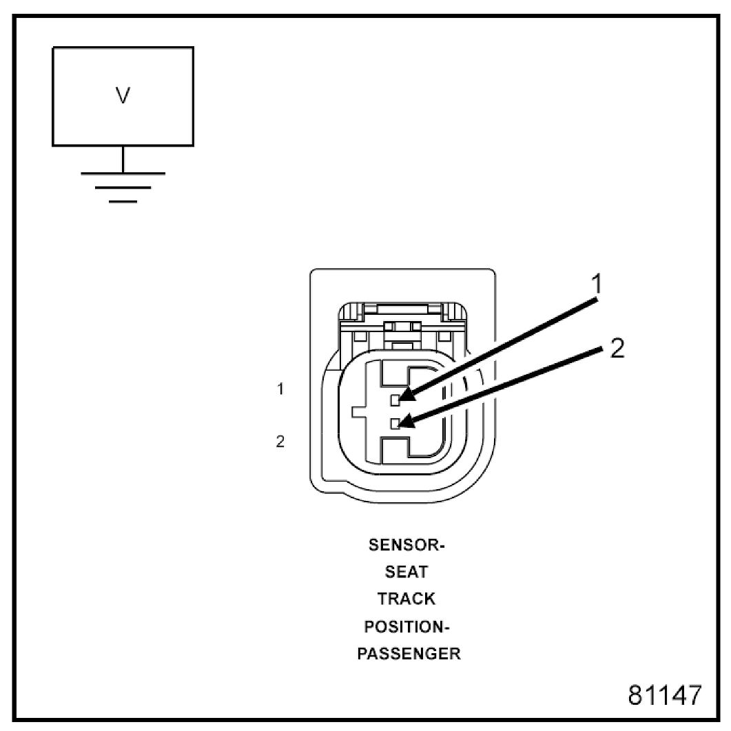 2. Measure the voltage of the (R262) Passenger Seat Position Sensor Data circuit between the Passenger Seat Track Position Sensor connector and ground.