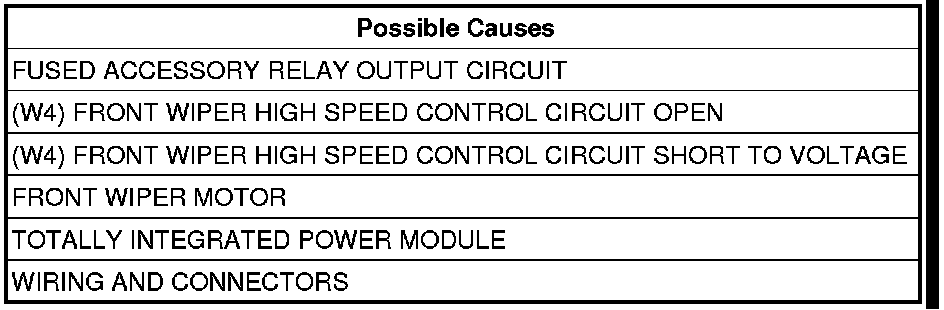 - Repair the (W4) Front Wiper High Speed Control Circuit for an open.