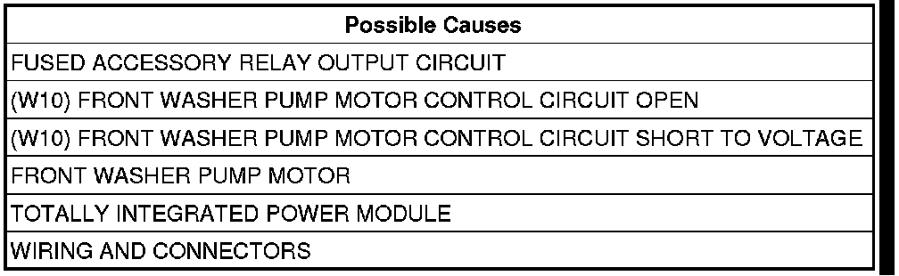 - Repair the (W10) Front Washer Pump Motor Control Circuit for an open.