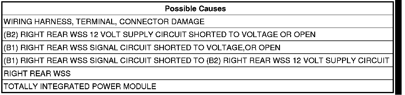 - Repair the (B1) Right Rear WSS Signal circuit for a short to voltage.