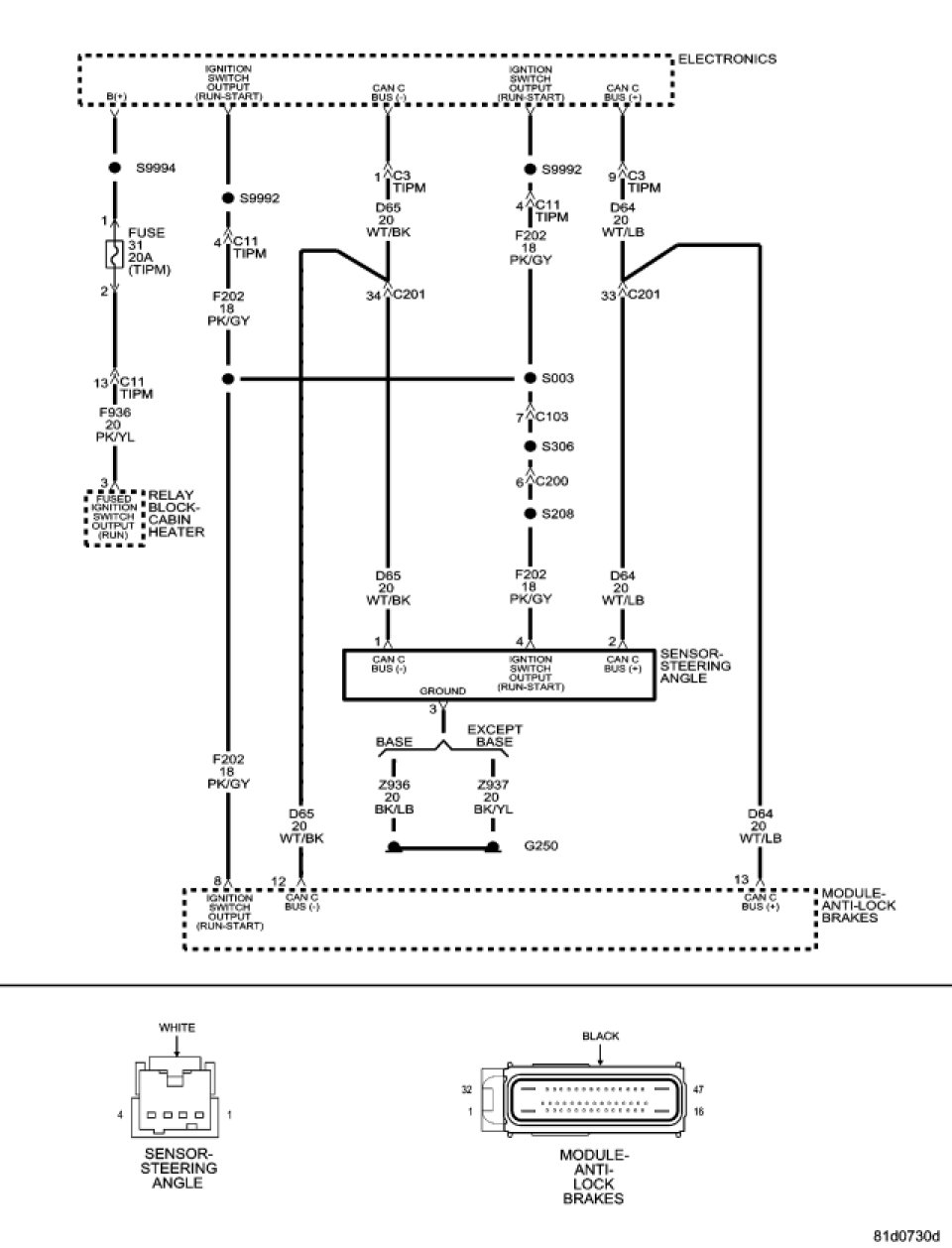 NOTE: A low voltage condition at the Steering Angle Sensor will cause this DTC to set.