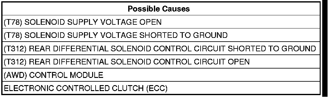 - Repair the short to ground in the (T312) Rear Differential Solenoid Control circuit.