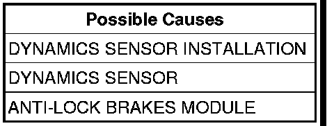 If the Anti-Lock Brakes Module detects that the Lateral Sensor signal is out of range.