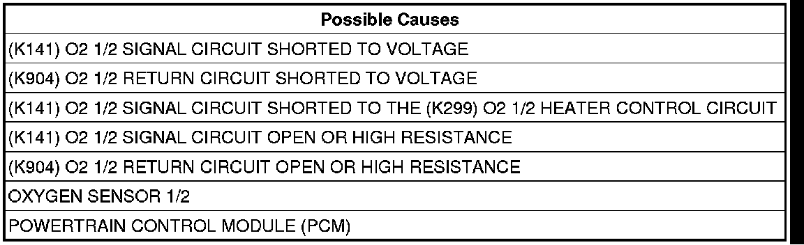 - Repair the (K141) O2 1/2 Signal circuit for a short to voltage.