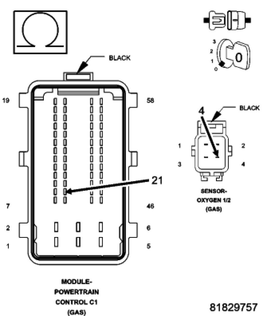 Using the wiring diagram/schematic as a guide, inspect the wiring and connectors between the Oxygen Sensor 1/2 and the Powertrain Control Module (PCM).