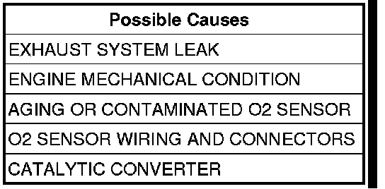 NOTE: Check for signs of contamination that may have damaged the O2 Sensor(s) and Catalytic Converter, such as: contaminated fuel, unapproved silicone, evidence of oil, coolant or anti-seize compound. Repair as necessary.