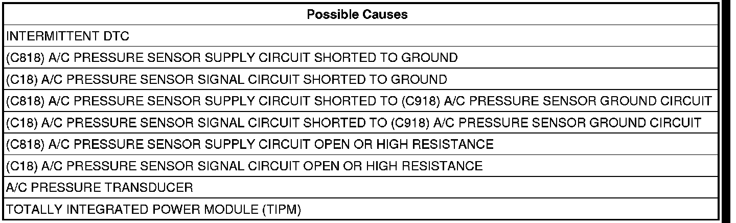 - Repair the (C818) A/C Pressure Sensor Supply circuit for a short to ground.