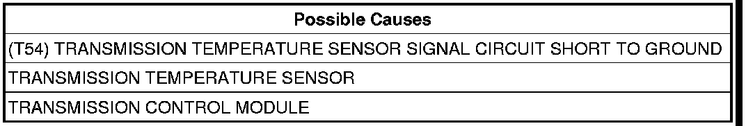 - Repair the (T54) Transmission Temperature Sensor Signal circuit for a short to ground.