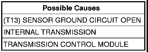 The Oil Temperature Sensor , Primary and Secondary Oil Pressure Sensor and the Input Speed Sensor use a common ground circuit that returns to the Transmission Control Module (TCM). If all of these circuits show an open (high voltage) the DTC will set.