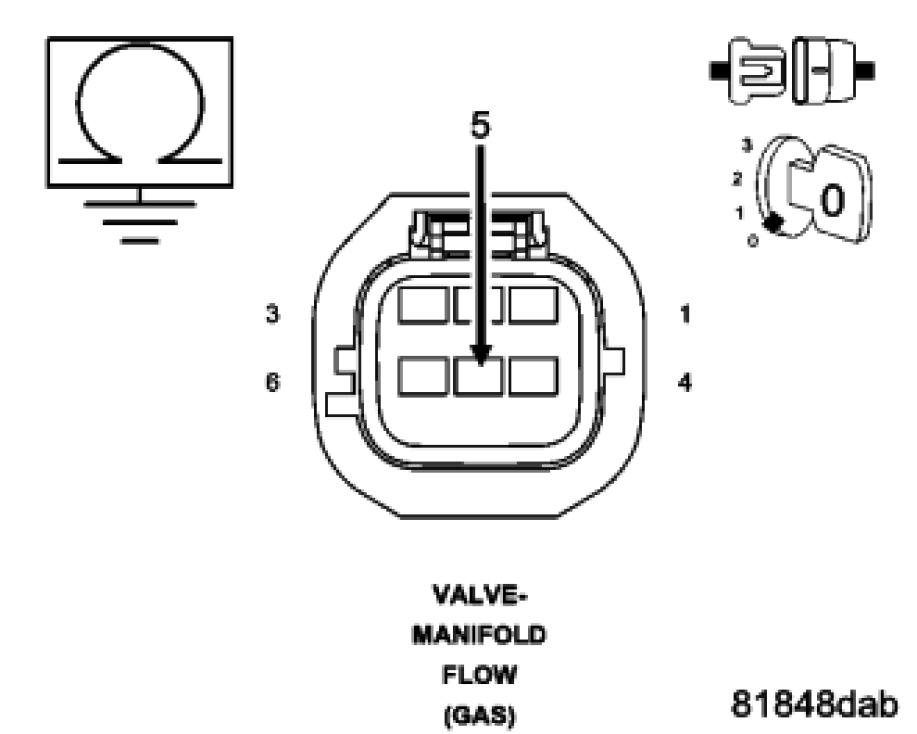 Measure the resistance between the (K602) MFV Signal circuit and the (K857) 5 Volt Supply in the Manifold Flow Valve harness connector.