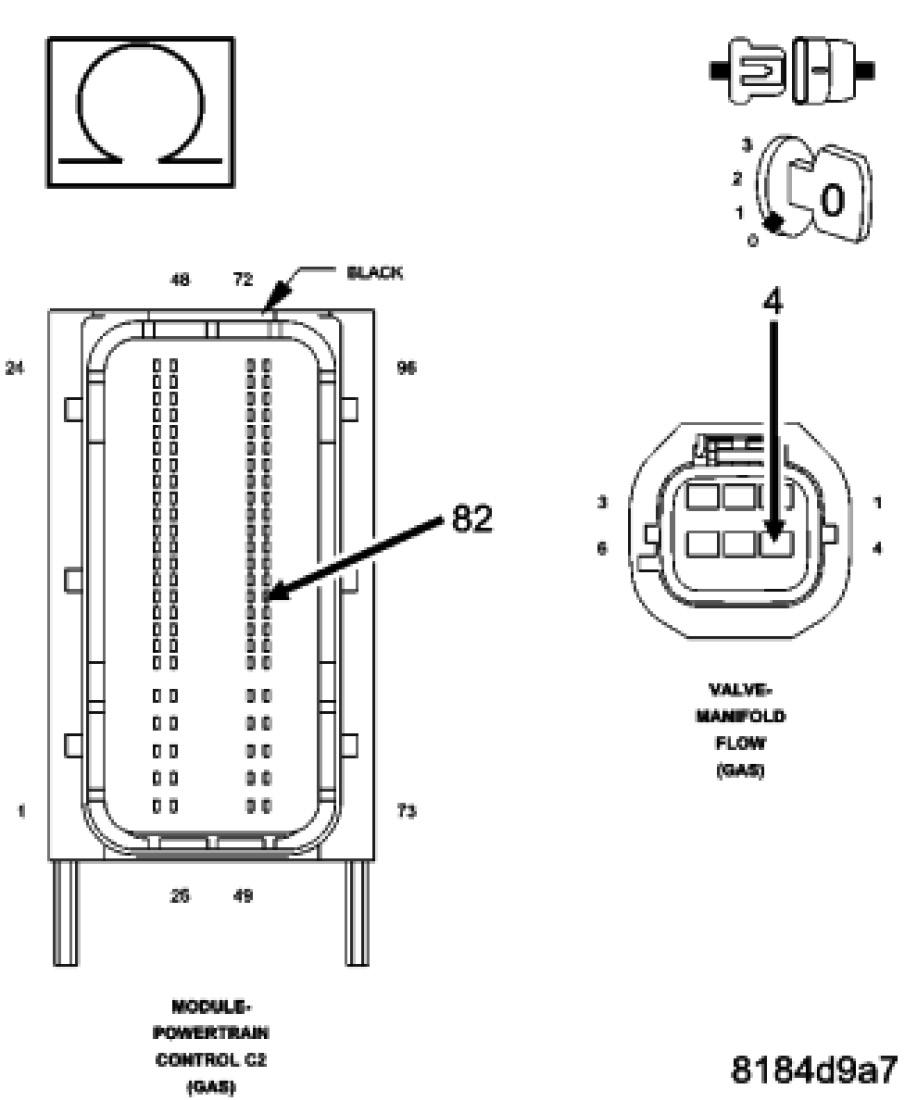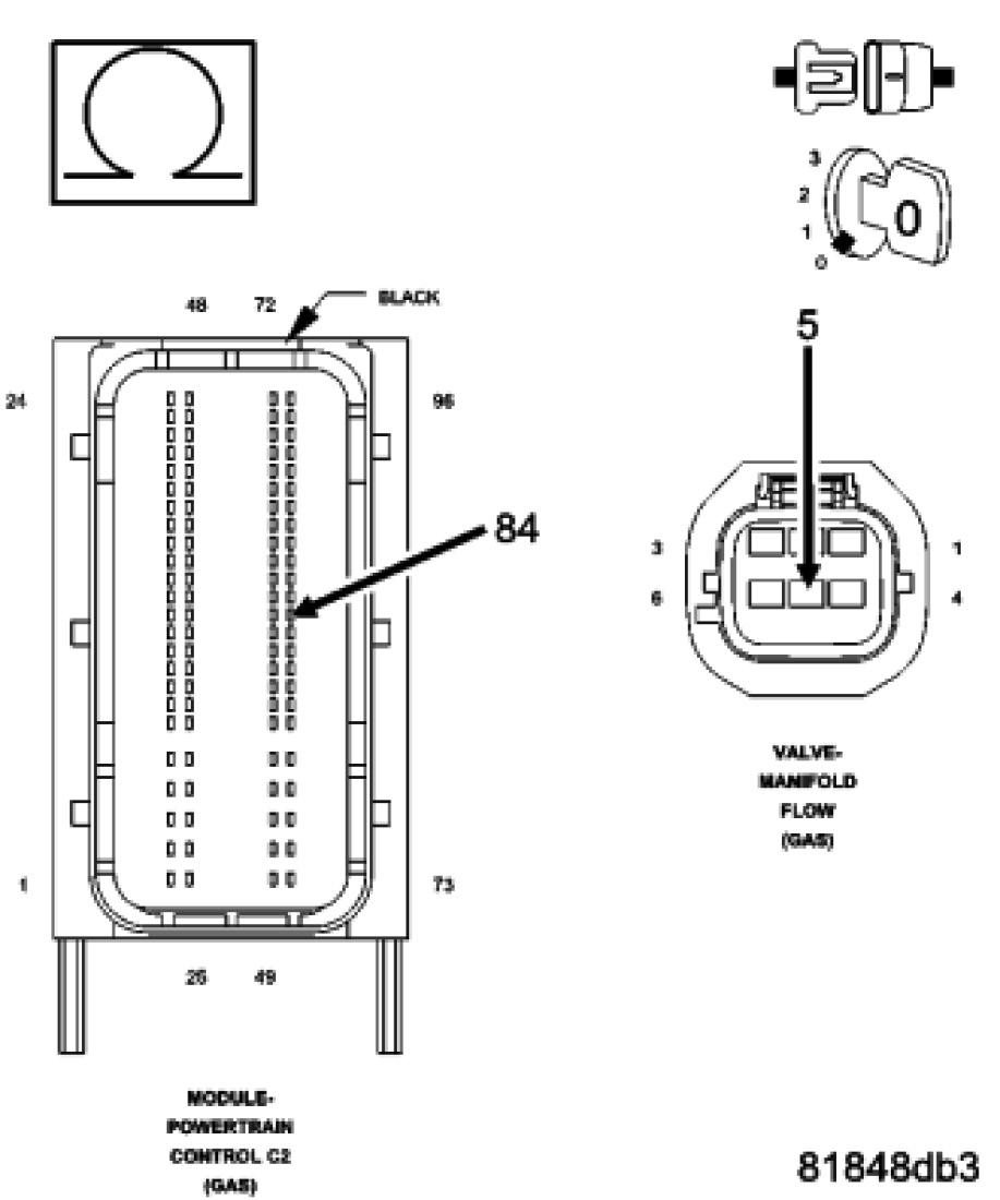 Using the wiring diagram/schematic as a guide, inspect the wiring and connectors between the Manifold Flow Valve and the Powertrain Control Module (PCM).