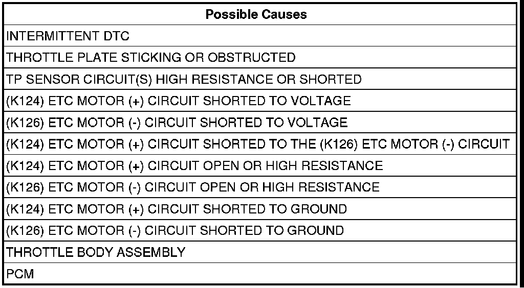 6. (K124) ETC MOTOR (+) CIRCUIT SHORTED TO THE (K126) ETC MOTOR (-) CIRCUIT