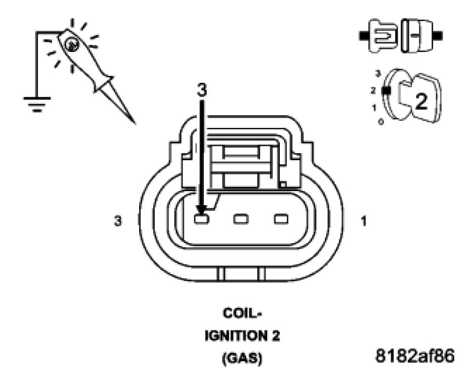 Using a 12 volt test light connected to ground, check the (K344) Fused Main Relay Output circuit in the Ignition Coil 2 harness connector.