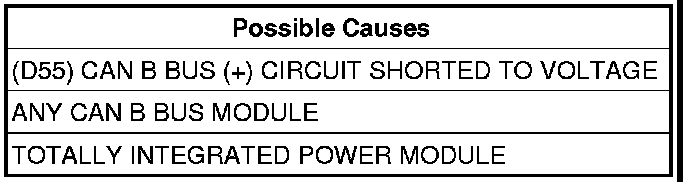 - Repair the (D55) CAN B Bus (+) circuit for a short to voltage.