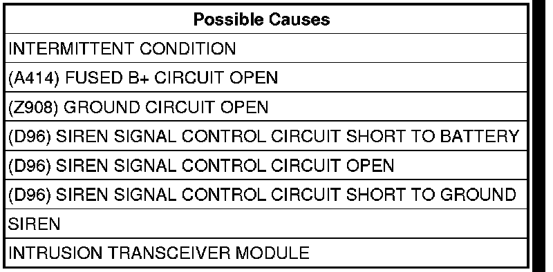 - Connect a known good siren and try to reset the DTC. If the DTC does not reset the original siren needs to be replaced. If the DTC does reset replace the Intrusion Transceiver Module.