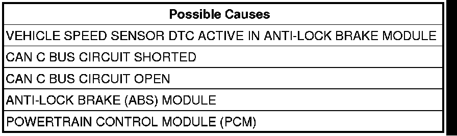 The ABS Module sends an implausible distance signal over the CAN C Bus circuit to the PCM.