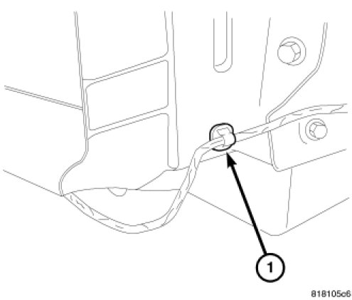 3. Remove wire harness push pin fastener (1).