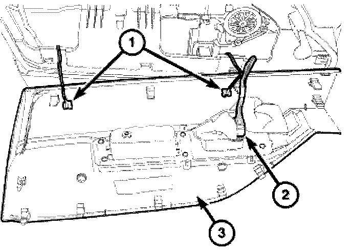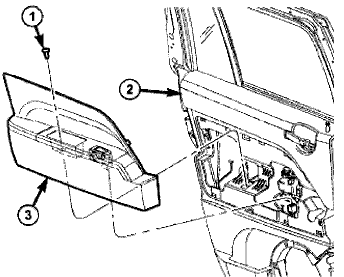 3. Using a trim stick C-4755 or equivalent, separate the bolster (3) from the door module (2).