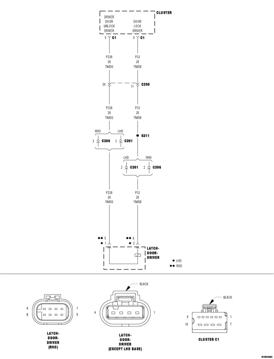 1. (P238) DRIVER DOOR UNLOCK DRIVER WIRE SHORT TO GROUND