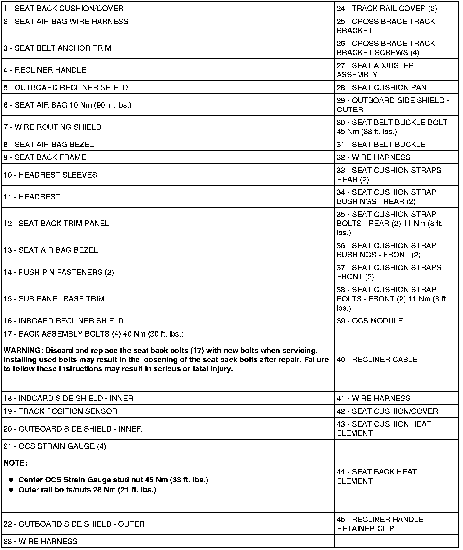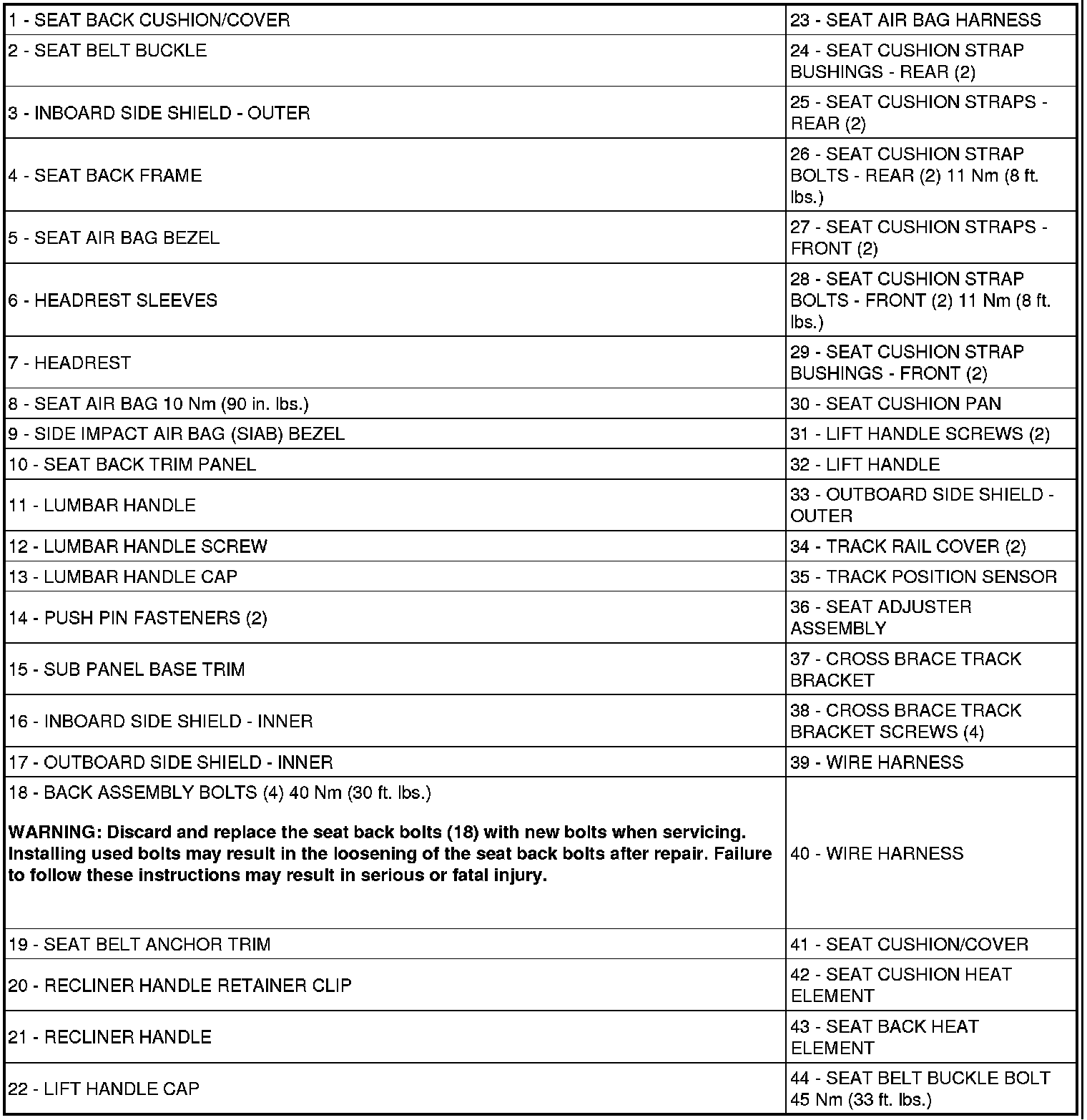Seats: Description and Operation