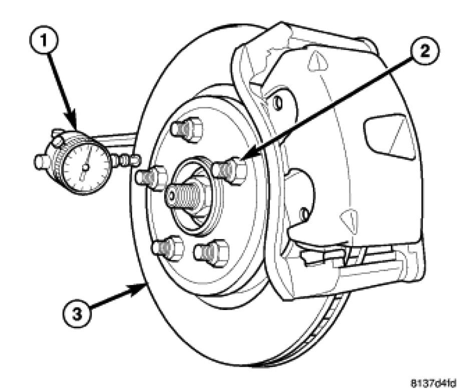 On-vehicle rotor runout is the combination of the individual runout of the hub face and the runout of the brake rotor (hub runout can be measured separately). To measure rotor runout on the vehicle:
