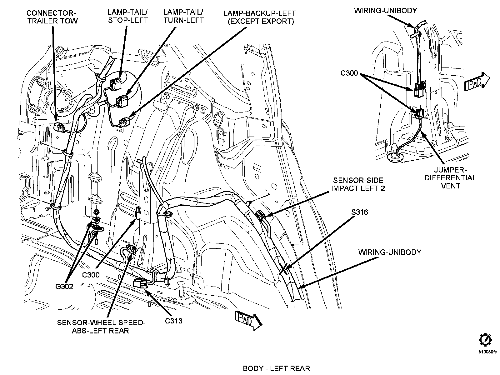 1 R19 20LG/WT LEFT SIDE IMPACT SENSOR 2 GROUND