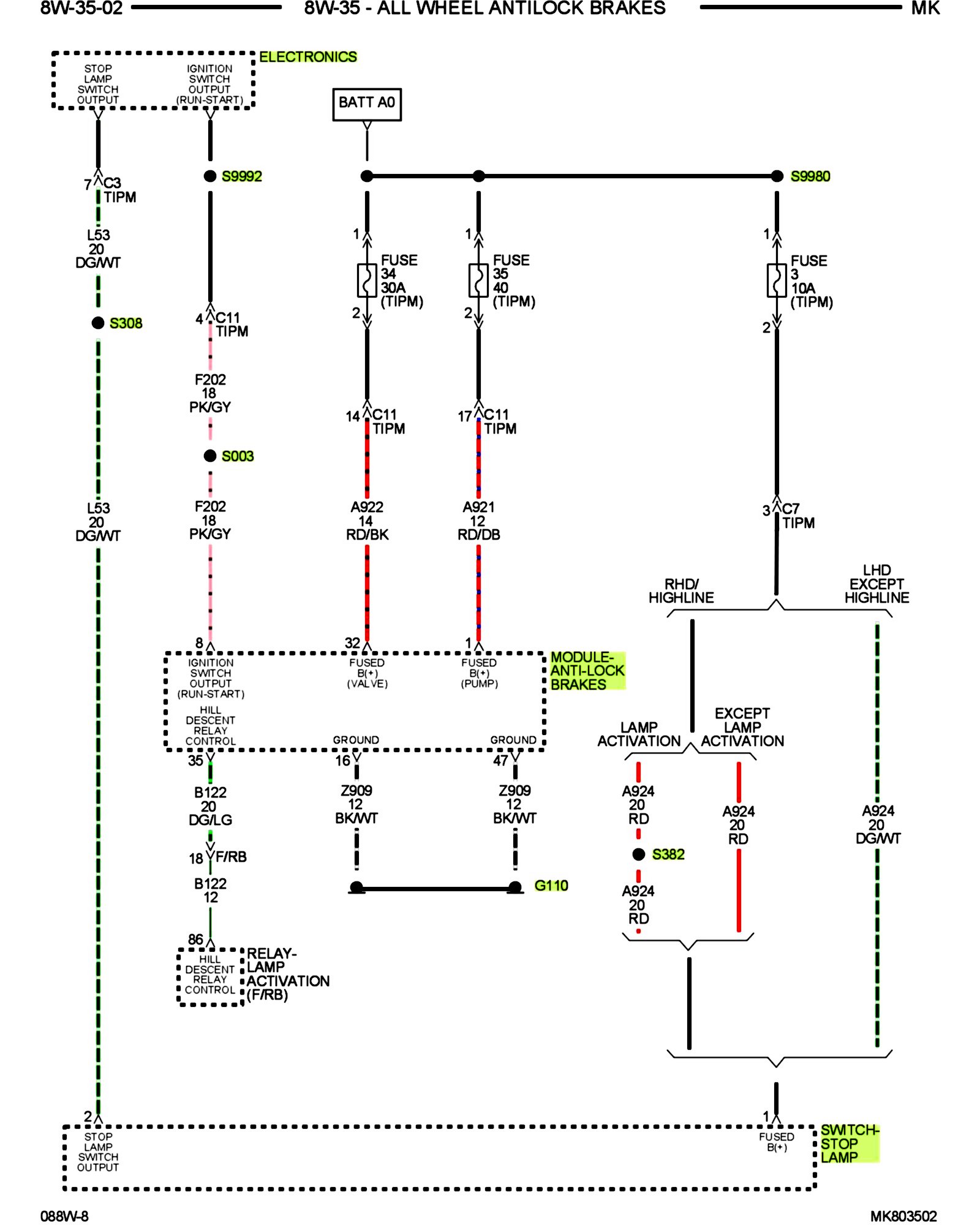 PLEASE NOTE: Some diagrams may appear to be missing because of gaps in the number sequences. These "gaps" are actually for diagrams that do not apply to the vehicle model selected.8w-35-02: