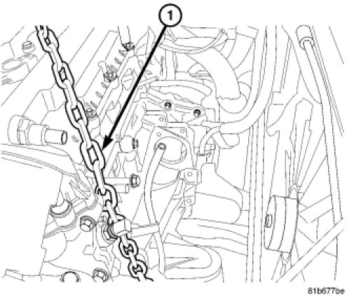 5. Remove engine from lift chain (1) and mount engine on a suitable repair stand.