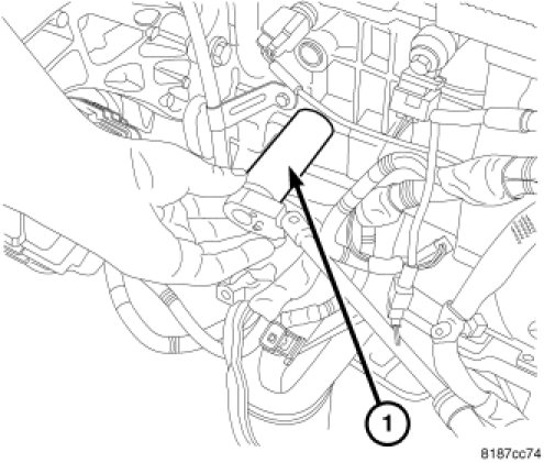 1. Install oil pressure sensor using oil pressure socket C-4597 (1) and tighten to 8 Nm (71 in. lbs.).