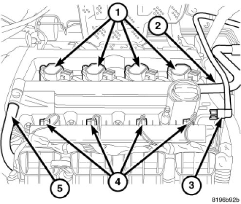 1. Remove engine cover (1).