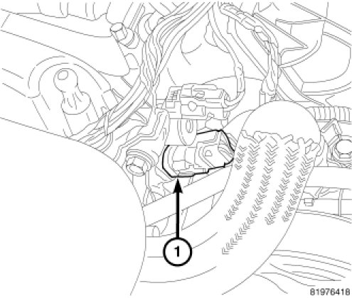 18. Remove upper radiator hose retaining bracket (1).