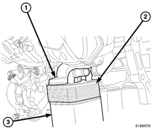 22. Install oil cooler if equipped (2)Engine Oil Cooler - Installation.