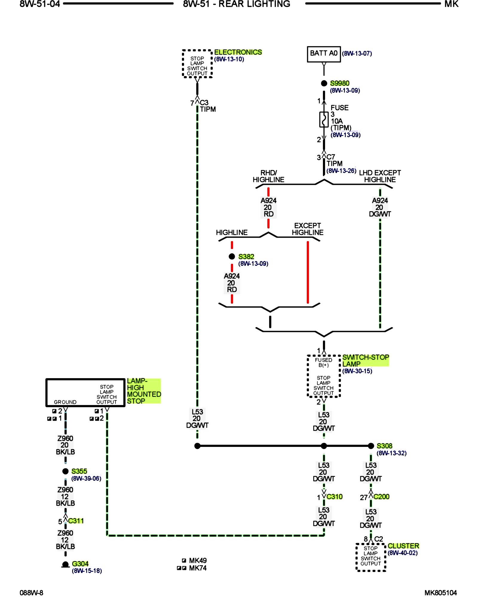 PLEASE NOTE: Some diagrams may appear to be missing because of gaps in the number sequences. These "gaps" are actually for diagrams that do not apply to the vehicle model selected.8w-51-02: