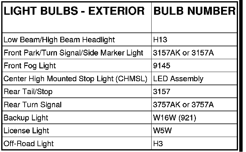 REPLACEMENT LIGHT BULBS - EXTERIOR