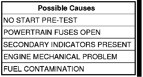 NOTE: Diagnose only the Secondary Indicators that would cause a no start.