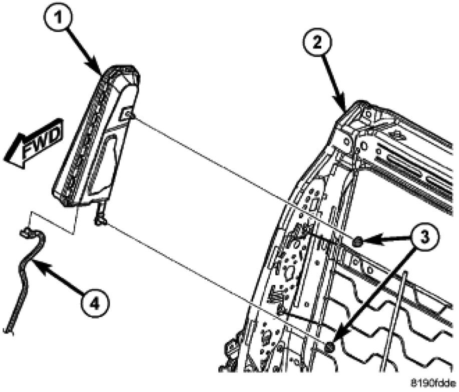 5. Reinstall the trim onto the front and back of the front seat back (2). Seat Back - Assembly.