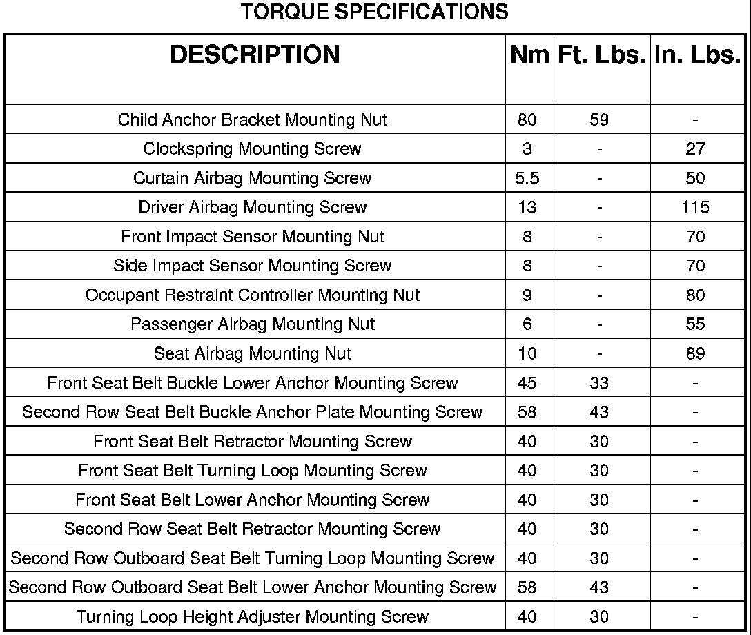 Restraints and Safety Systems: Specifications